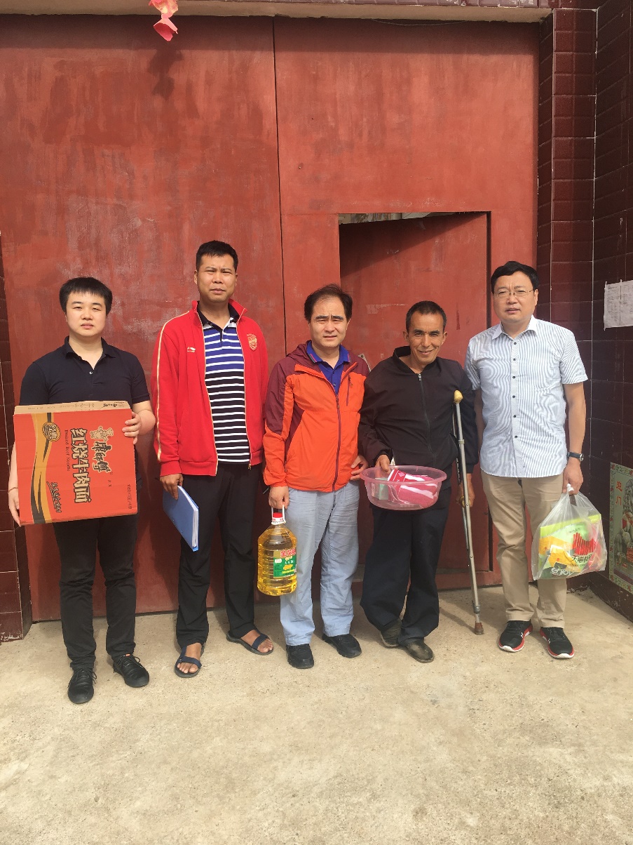 党委书记马行天,党委副书记孙会珠,工会委员陈斌一行3人来到坚固村开展帮扶活动,与驻村党支部书记刘杰同志一起看望、慰问了贫困户王岁仔,为帮扶户送上食用油、粽子等生活用品,关心帮扶户近解夏收情况,关心身体和经营情况,并向帮扶户宣讲了当前国家扶贫及医保的相关政策。