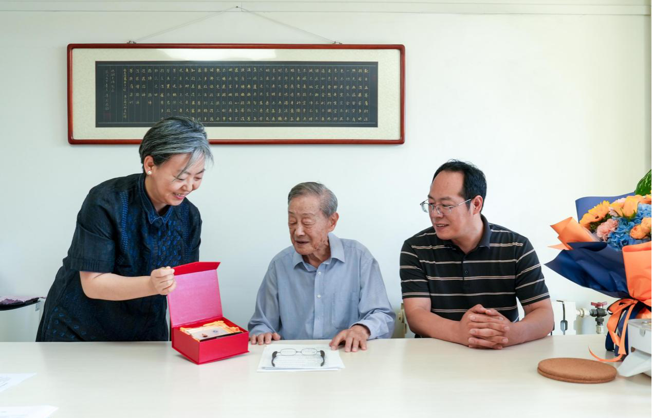 为致敬孙健初先生“为国找油”的赤子情怀,高黎向孙鸿烈院士赠送了学校特色纪念品“一滴油”。这枚凝聚石油文化的纪念品,既象征孙健初先生奠定中国现代石油工业基石的开拓精神,也寓意学校传承先辈薪火、培育新时代能源报国人才的使命。孙鸿烈院士也特别寄语青年学子:“传承地质救国初心,践行能源报国使命”,表达了对新时代能源人才培养的深切期许。