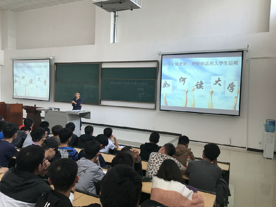 接着李老师以“如何读大学”为题,为同学们一一列举了当前大学生在学习、生活、心理、人际交往等方面存在的各种不适应现象,分析了产生“不适应”问题的原因,并分享了调试个人“不适应”问题的基本策略和建议。在此基础上,李老师提出四年大学时光需要做好的三件事情:“学会学习、学会做人、学会做事”。他建议大一新生要自觉做好学习规划和职业生涯规划,树立明确的学习目标,保持充足的学习动力,培养自己的专业兴趣,积极参加各类创新创业、课外科技和文体活动,树立正确的婚恋观,常怀感恩之心,积极参加各类公益活动,诚信做人、踏实做事,争做德智体美全面发展的新时代合格大学生。