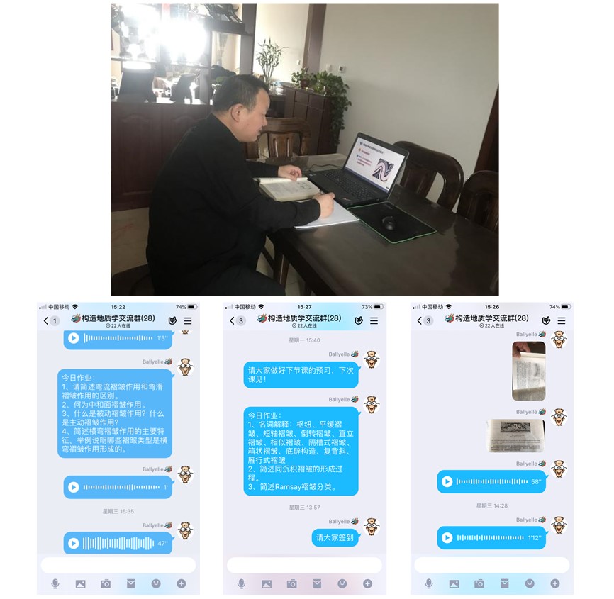 杨斌谊老师主讲的《构造地质学Ⅲ》课程,主要采用的是“学习通+QQ群”线上教学模式。该门课程作为一门重要的专业基础课,对知识点的理解能力、读图作图能力、逻辑推理能力、空间想象能力等要求较高。为了加强和改善教学效果,构造地质学课程组团队录制了相关课程视频资料,并上传PPT和电子课本等相关学习资料,要求学生做好课前预习的各项工作,培养学生自学能力和查找问题的能力,提前做到心里有数,把疑难问题集中起来为上课讨论做好准备。