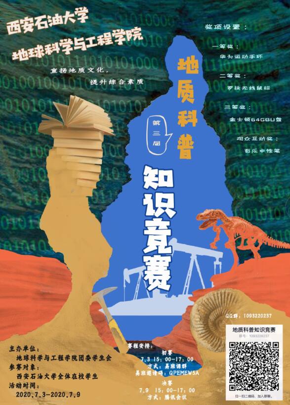 团委主办了以“宣传地质文化、提升综合素养”为主题的第三届地质科普知识竞赛初赛,竞赛在易班平台举行,比赛共吸引了来自全校各院系共计215学生参加。