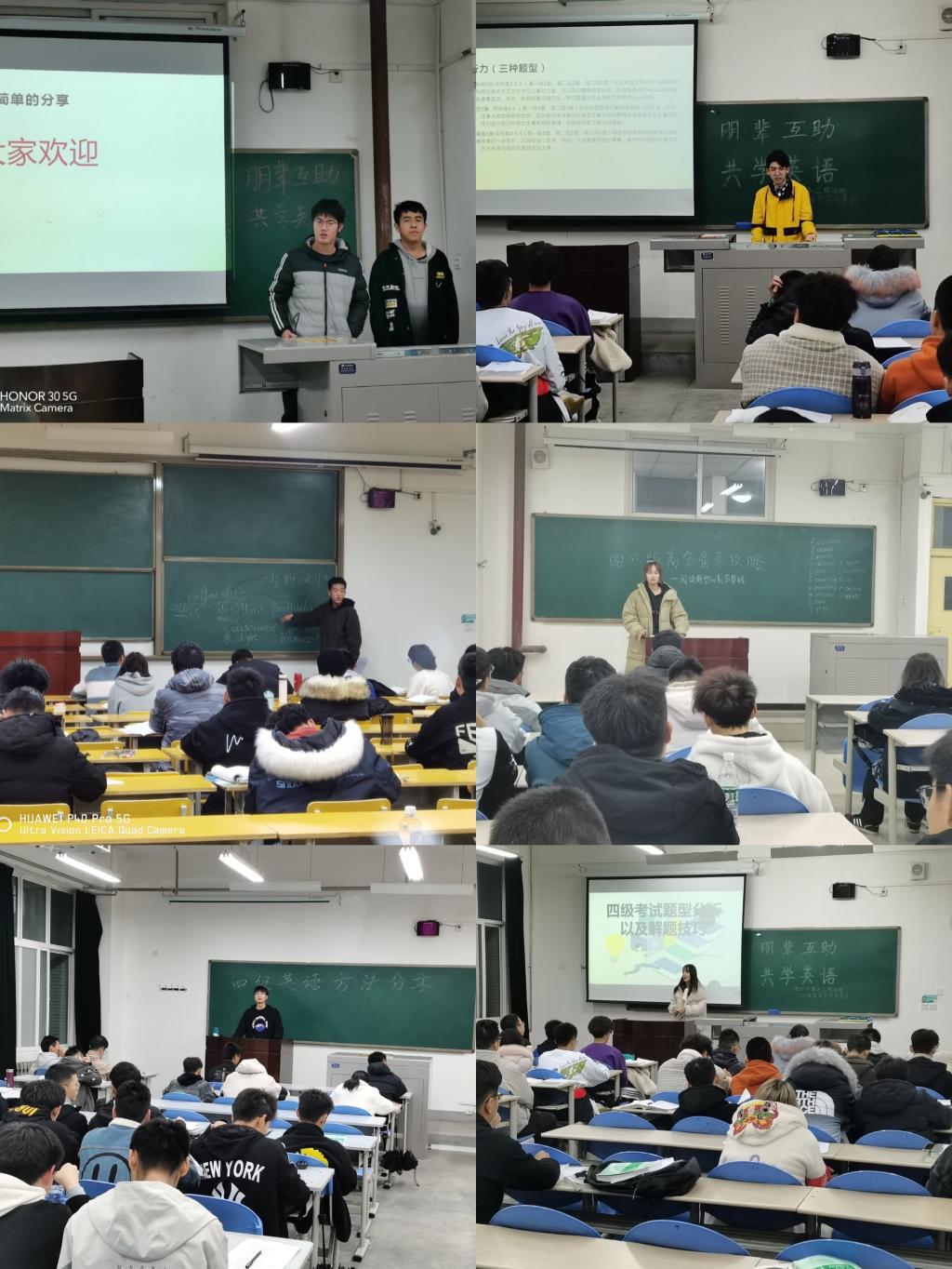 统一目标,各年级因需制宜原则,采取开展专业老师讲座辅导、成立学生导师团互助、组织定期模拟考试、分层专项自学及组织英语类活动等方式,激发学生英语学习兴趣,提高学生英语听说读写能力,帮助学生高效通过英语四六级。通过英语学习以点带面,继续传承地科院优良学风。