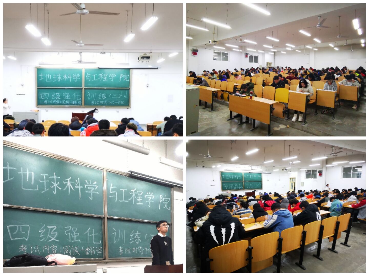 本轮考试分两周进行,将英语四级的模块拆解开,分类印发给学生统一做题,阅卷,讲评。集体测试过程中,同学们全神贯注,严格按照考试时间去分配本模块的答题时间,按考试要求答题。在本轮测试中,学生自觉遵守考试纪律,整个考场秩序有条不紊。
