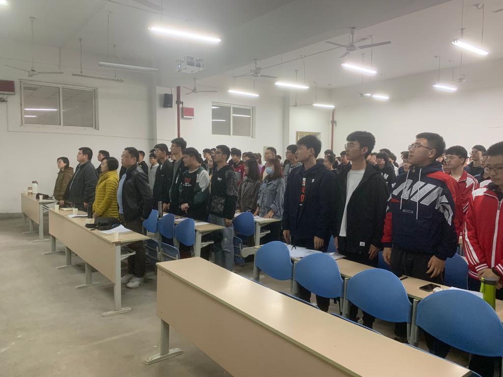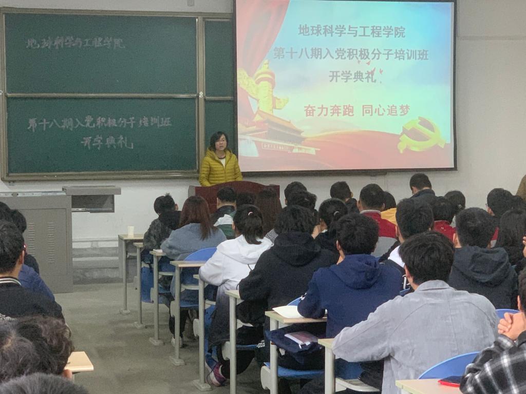 党委副书记王莹老师介绍了本次培训班整体情况及对学员的考核要求,并对课堂纪律提出具体要求。本期培训班采取理论与实践相结合的方式,分为课堂授课和课外延伸两个部分,其中课外延伸部分包括学员小组讨论、主题活动、培养考察期间帮扶学习困难学生等发挥积极分子作用情况三个环节。随后勘探2001班阮勇淇作为本次参加入党积极分子培训班的学生代表进行了发言。