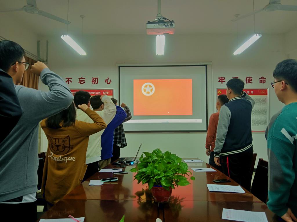活动在庄严雄壮的国歌声中拉开序幕,大家集体学习了习近平总书记在庆祝中国共产党成立100周年大会上的重要讲话精神,观看相关爱国视频。学生会主席靳兴领学习近平总书记来陕重要讲话和习近平总书记在建党100周年庆祝大会上的讲话。随后地质2002生活委员彭韵力、地质2002退伍军人黄道敏、地工2102班班长高嘉宇、地质2102班班长薛嘉琦分别就自己的学习感悟向其他学生干部做了分享。2021级辅导员刘宇航做了总结讲话,他指出大家要高举马克思主义思想火炬,以铁人精神、延安精神为精神支柱,认真学习专业知识,树立正确的价值观念,将小我融入到党和人民的共同奋斗之中、融入到社会主义建设的伟大进程之中、融入到我国石油事业的蓬勃发展之中。活动最后,全体参会人员进行“请党放心,强国有我”宣誓仪式,由院学生会主席靳兴同学领誓。