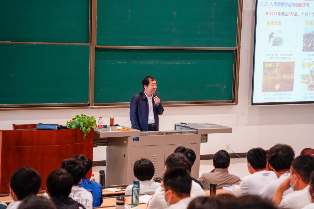 在授课中,李校长首先围绕“双碳目标”和习近平总书记对统筹有序做好碳达峰、碳中和工作的多次指示,向同学们介绍了全球环境事件动态,阐释了加快碳减排是大势所趋。然后,李校长分别介绍了世界油气发展趋势和我国油气发展趋势。他以地球演化为切入点,从“能源科技革命”“世界能源新格局”“世界油气工业”“世界天然气工业”“一次能源消费结构变化”等六个方面阐述了世界油气发展趋势。又从油气是国家重要战略资源为切入点,从“新中国石油进出口史”“中国含油气盆地分布”“我国石油进口海上通道”等七个方面阐述了我国油气发展趋势。最后,李校长结合自己的工作学习感悟,对新能源发展趋势做出展望,对地科学子的学习生活做了指导和要求。他强调我们要积极推动我国能源生产与消费革命,坚持“四个革命 、 一个合作”,不断勤奋学习,刻苦钻研,要面向世界科技前沿、面向经济主战场、面向国家重大需求、面向人民生命健康做出科技创新。他希望大家要牢记习近平总书记的嘱托,在日常学习生活中要爱党爱国爱民,要锤炼品德、勇于创新、实学实干。
