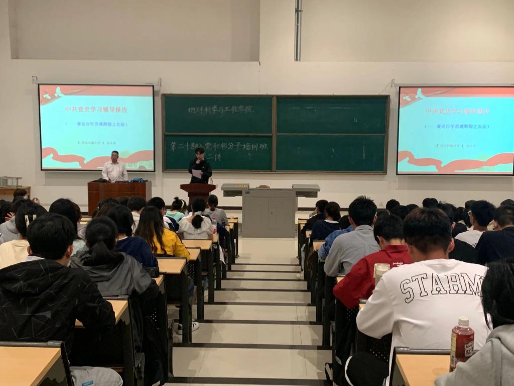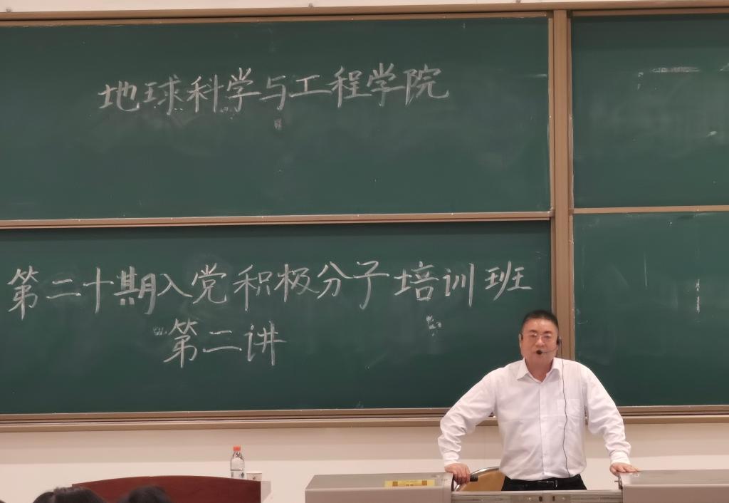 党委书记余小勇老师主讲,研究生辅导员兼任组织员姜英哲老师主持,全体入党积极分子参加。
