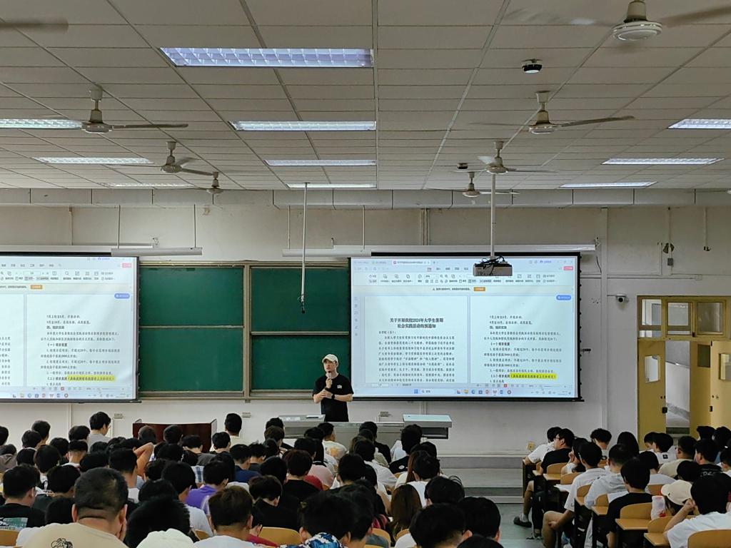 在鄠邑校区博览楼139教室召开2024年暑期社会实践动员大会。大会由辅导员刘学斌主持,2023级全体学生参加。