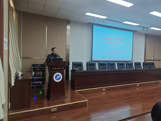 的中心任务之一。对此,他针对全体研究生提出几点要求,一是要端正学风作风,遵守各项规章制度,在科研学术上追赶超越;二是要树立正确就业观念,要认真考虑个人情况,开拓就业思路,把握就业机会;三是要时刻注意人身安全,在保障自身安全的前提下开展工作;四是鼓励研究生积极报考博士,将攻读博士研究生作为个人学术与职业生涯的重要选择,为未来发展打下坚实基础。