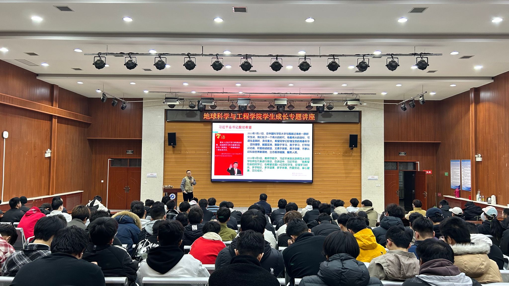 在鄠邑校区崇文楼118报告厅举办学生成长专题讲座。中国产学研合作促进会党委委员、教育部高等学校地质类专业教学指导委员会副主任刘玉强教授应邀作“刻苦学习、坚持努力、实现理想”讲座,角球之家