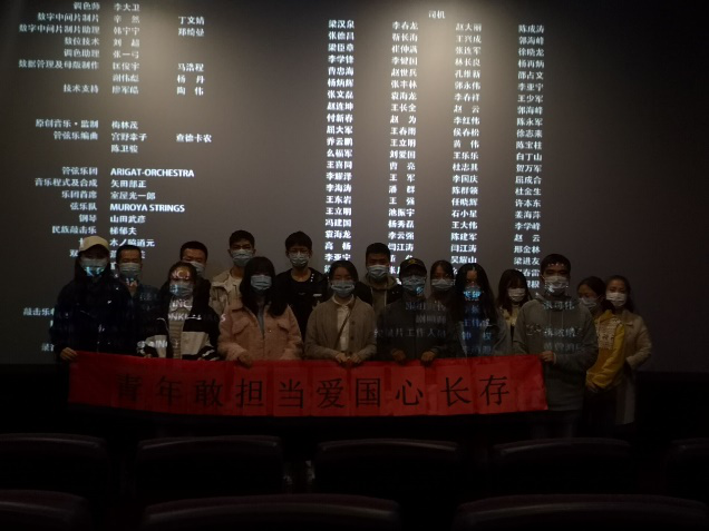 20201013日晚上18.30,全体党员冒雨准时到场,戴好口罩,做好防护措施,有序进入电影院,等待电影开始。
