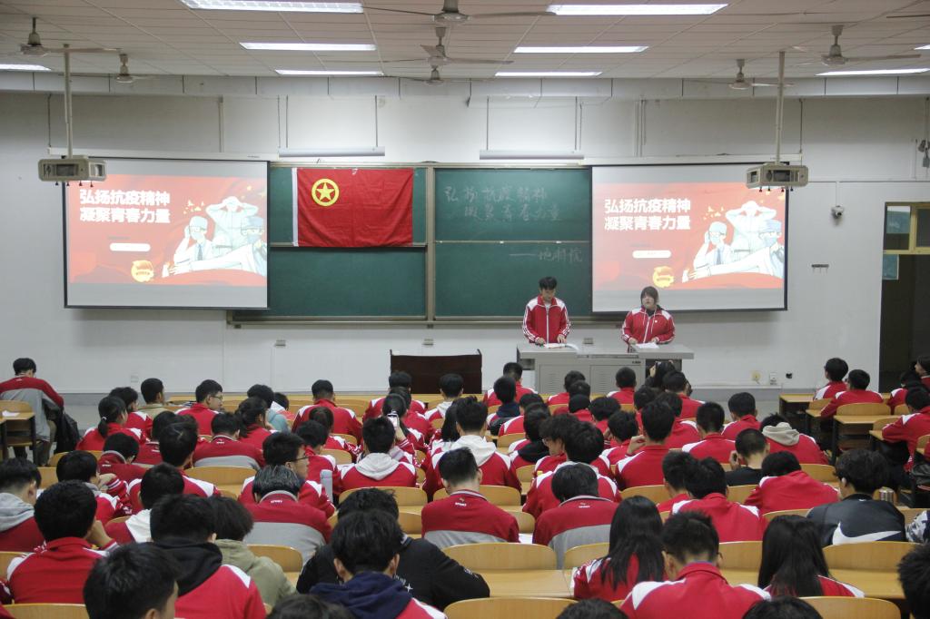 在西安石油大学鄠邑校区A239教室召开“弘扬抗疫精神,凝聚青春力量”主题团日活动,院学生会指导老师李佩琦及全院200余名团员参与了本次活动。